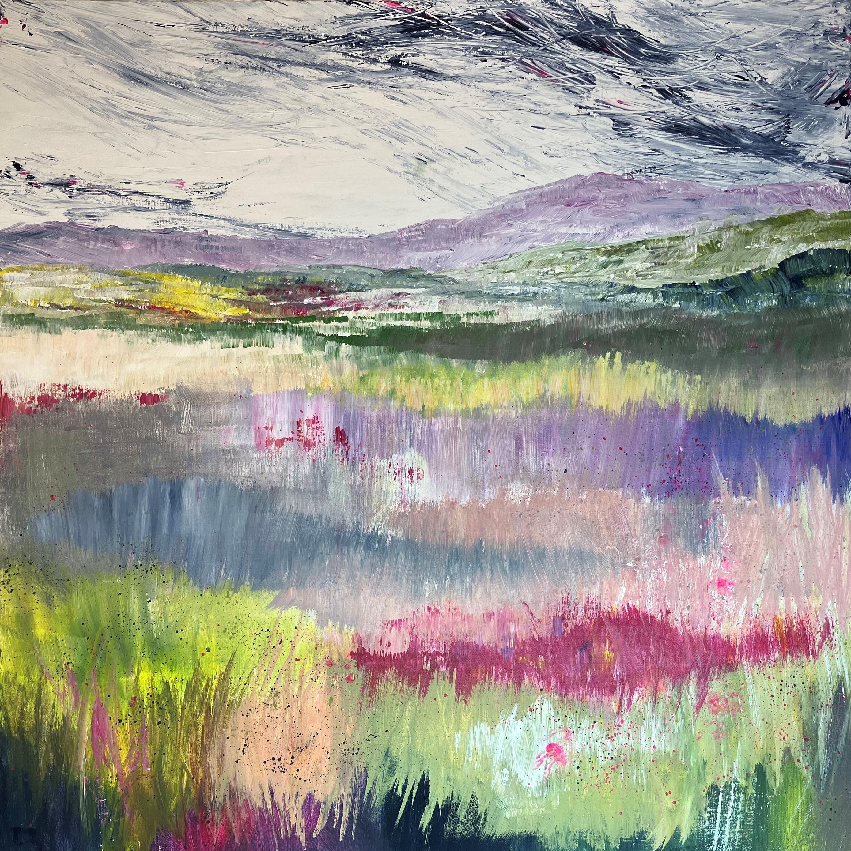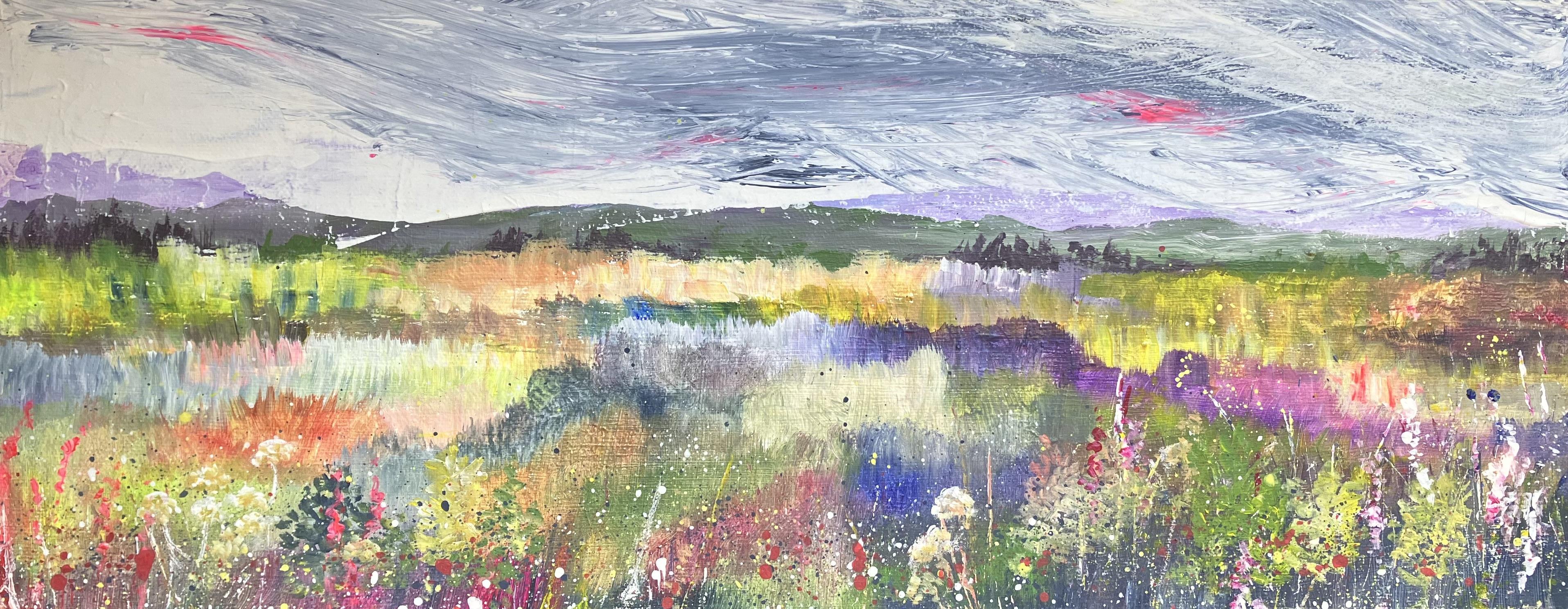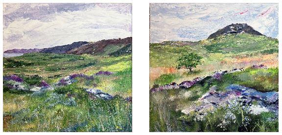 At the beginning of 2022, when I was dragging myself out of the last of the lockdown treacle and finding my way back to painting after nearly two years break, I needed to measure how "well" I was painting. I found this in a very realistic colour palette and real views that you could actually pinpoint on a map (of Mull) and they formed this series called "Island Breezes" numbered 1-6. They are all around the same spot on the hill above Ulva Ferry - some facing up to Dun More, some out to Ulva, and others more focussed on the tussocks and flowers under my feet. They are all 30cm square, acrylic on stretched canvas, available for £150 each and unframed as the painting continues around the deep canvas edge on all of my paintings.