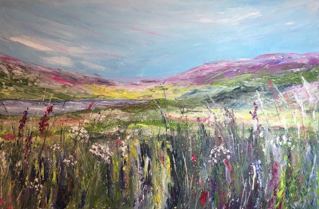 I captured a small part of it when I was painting live for the first time after lockdown in July 2021. The first one I didn't finish on the day, but the second I called "Lifted" as it really described how that event rejuvenated my painting spirit and the result suited the title perfectly. It's not a real place but painted purely in remembrance of all those other scenes. It is 75cm x 50cm, acrylic on canvas and £595 (if I can bear to part with it at all!)